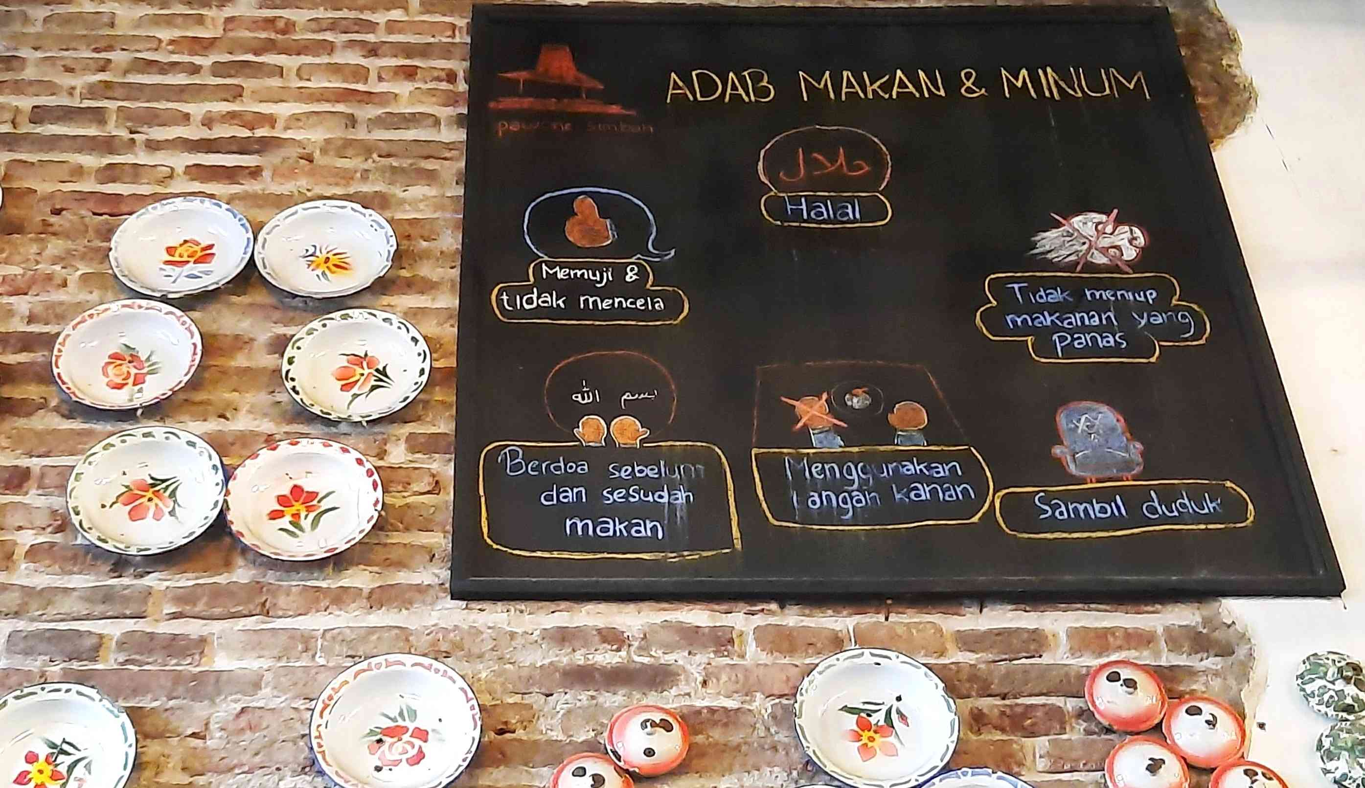 Penyambutan di pintu masuk restoran begitu kontras dengan suasana luar. Detail ornamen yang disajikan terasa menyegarkan mata. Seorang petugas yang mengenakan kebaya kutubaru motif jumputan menyapa dengan ramah, "Selamat datang, Kak." Di dekat meja resepsionis yang juga berfungsi sebagai kasir, terlihat deretan permen jadul yang tersaji di meja samping.